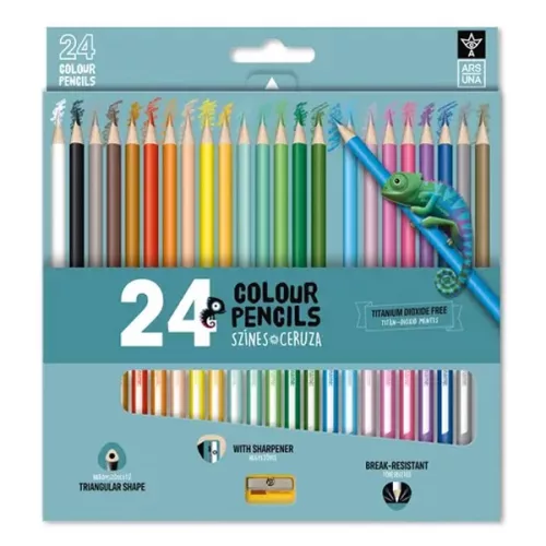Színes ceruza ARS UNA háromszögletű + hegyező 24 darabos