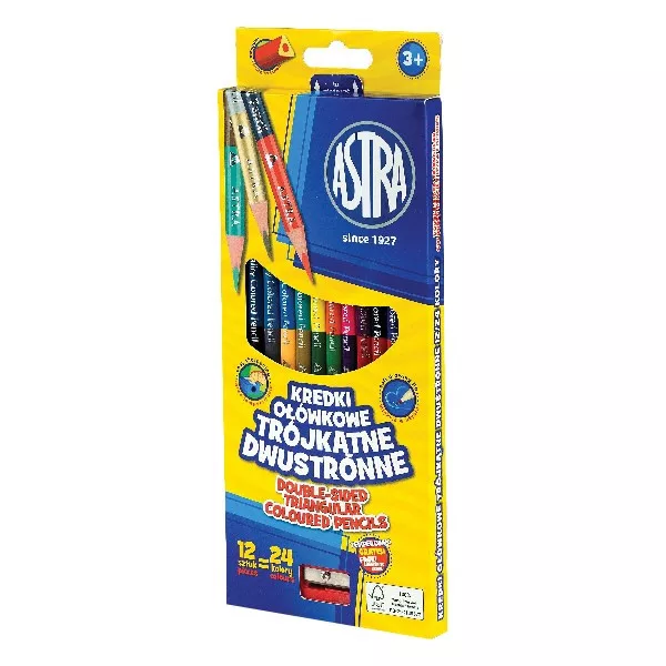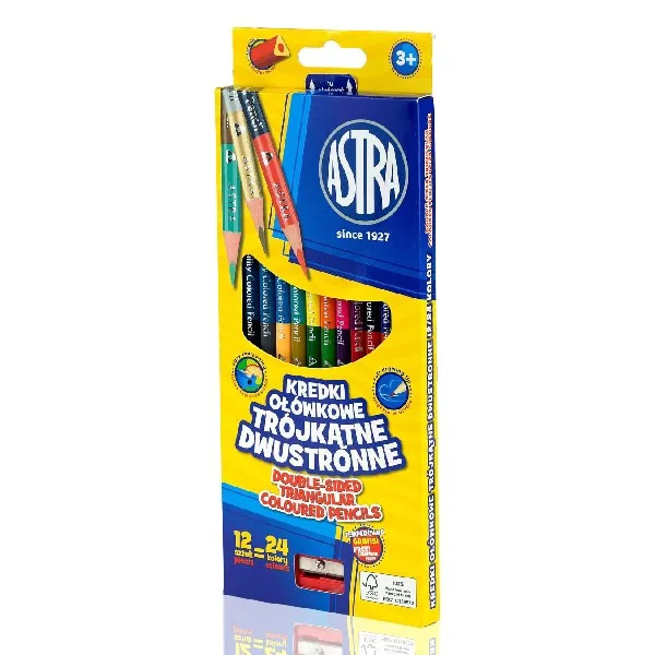 Színes ceruza ASTRA Duo háromszögletű kétvégű ajándék hegyezővel 24 színű