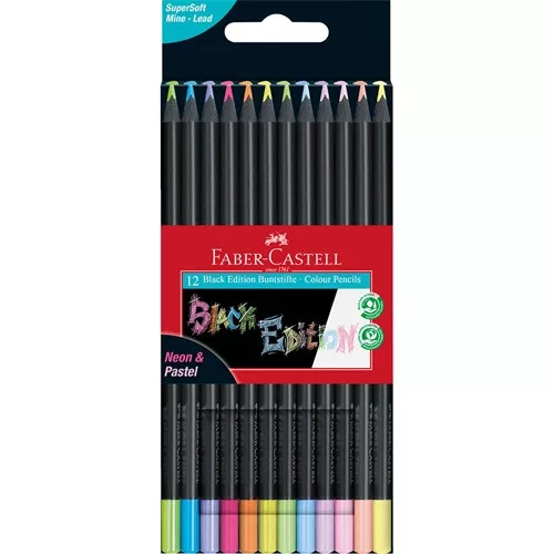 Színes ceruza Faber-Castell Black Edition 12 db-os klt fekete test pasztell+neon