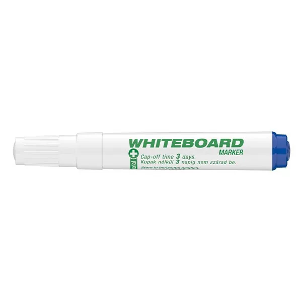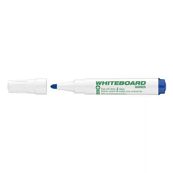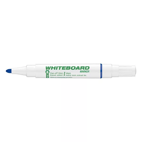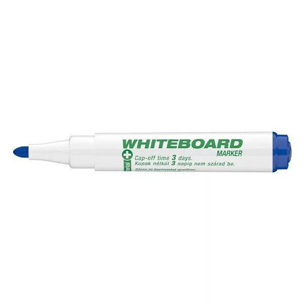 Antibakteriális whiteboard marker, fehér táblára való írásra, rajzolásra. A műanyag alkatrészek antibakteriális védelmet adó Biomaster ezüst-ionokat tartalmaznak (biocid hatóanyag: ezüst-foszfát üveg).