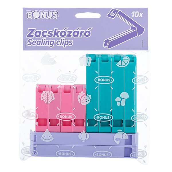 Tasakzáró csipesz BONUS műanyag 3 méret vegyes színek 10 darabos