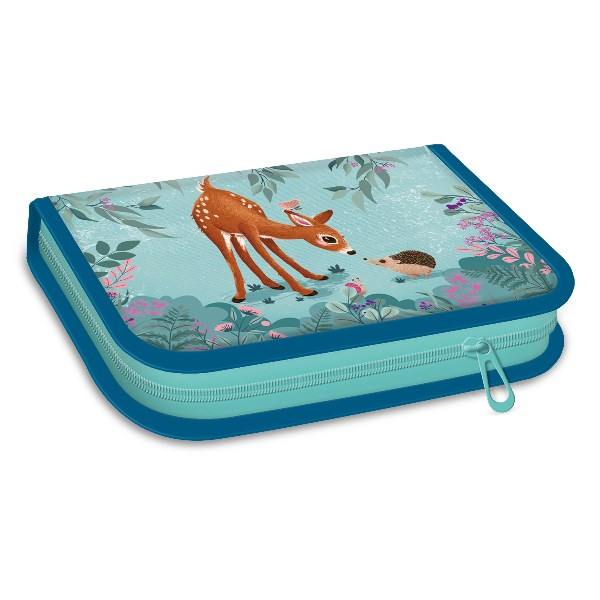 Írószerekkel töltött cipzáros tolltartó két kihajtható füllel, gumis kialakítással az írószerek tárolásához. Tartalma: 12 db színes ceruza, 3 db HB grafit ceruza, 1 vékony és 1 vastag postairón, 8 db színes filctoll, 1 db radír, 1 db hegyező, 1 db 17 cm-es egyenes vonalzó, 1 db háromszög vonalzó, órarend A és B hétre.