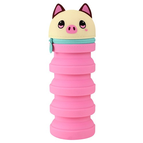 Ez a termék a Santoro márka Bangoberry kollekciójának része, és egy aranyos malac mintájával díszített harmonika tolltartó. A tolltartó henger alakú, és harmonikaszerűen bővíthető, így rengeteg helyet biztosít az írószerek számára. Cipzár fut körbe rajta, amely a nyitó mechanizmus szerepét tölti be.