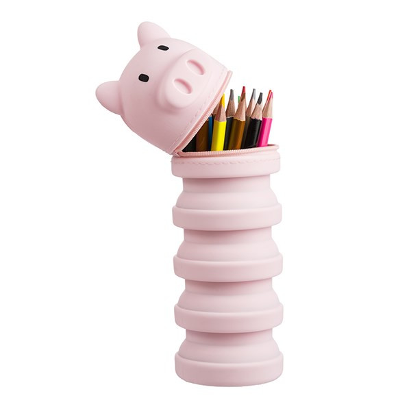 Harmonika tolltartó aranyos malac mintával, mely az asztalon nyitott állapotban tárolóként is működik. Minőségi puha és selymes tapintású szilikon alapanyaga könnyen tisztítható. Formájának köszönhetően remek játék és ajándék is egyben.