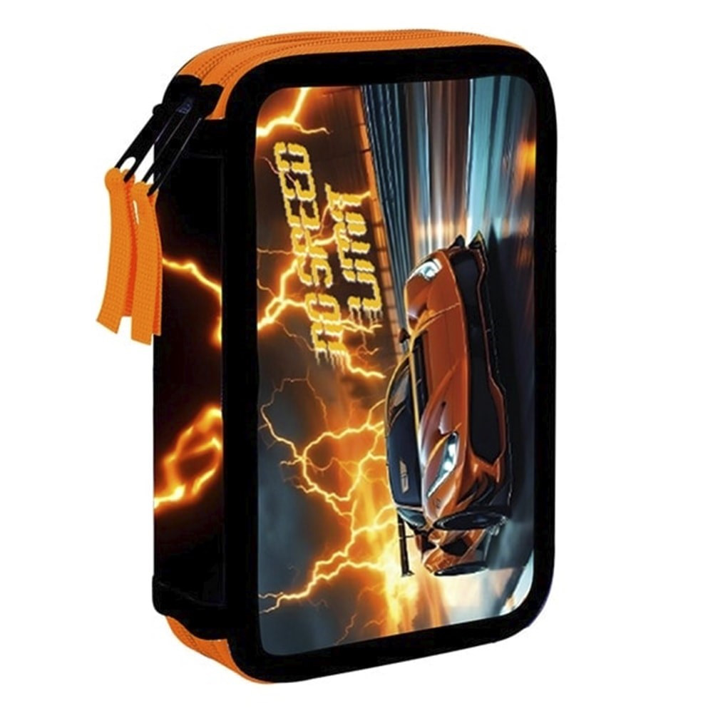 Kétszintes iskolai tolltartó írószerek nélkül. 25 gumipántot tartalmaz az írószerek és a tanításhoz szükséges apróságok tárolására. Erős cipzárral és nagy húzófülekkel készült a könnyű használat érdekében. Az egyik szint átlátszó zsebbel rendelkezik a heti órarend számára.