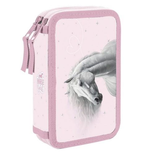 Kétszintes iskolai tolltartó írószerek nélkül. 25 gumipántot tartalmaz az írószerek és a tanításhoz szükséges apróságok tárolására. Erős cipzárral és nagy húzófülekkel készült a könnyű használat érdekében. Az egyik szint átlátszó zsebbel rendelkezik a heti órarend számára.
