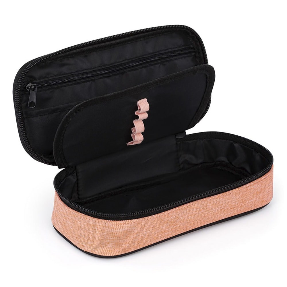 Az iskolai tolltartó erős cipzárral, cipzáras zsebbel és mindkét oldalon erős gumipántokkal ellátott füllel rendelkezik. A fül alatt szabad tárolóhely található írószerek vagy egyéb apróságok számára.