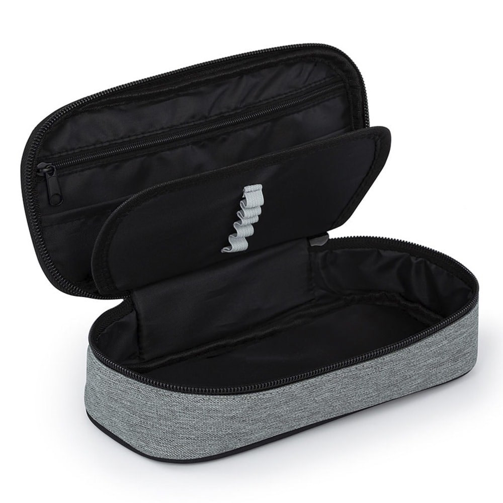 Az iskolai tolltartó erős cipzárral, cipzáras zsebbel és mindkét oldalon erős gumipántokkal ellátott füllel rendelkezik. A fül alatt szabad tárolóhely található írószerek vagy egyéb apróságok számára.