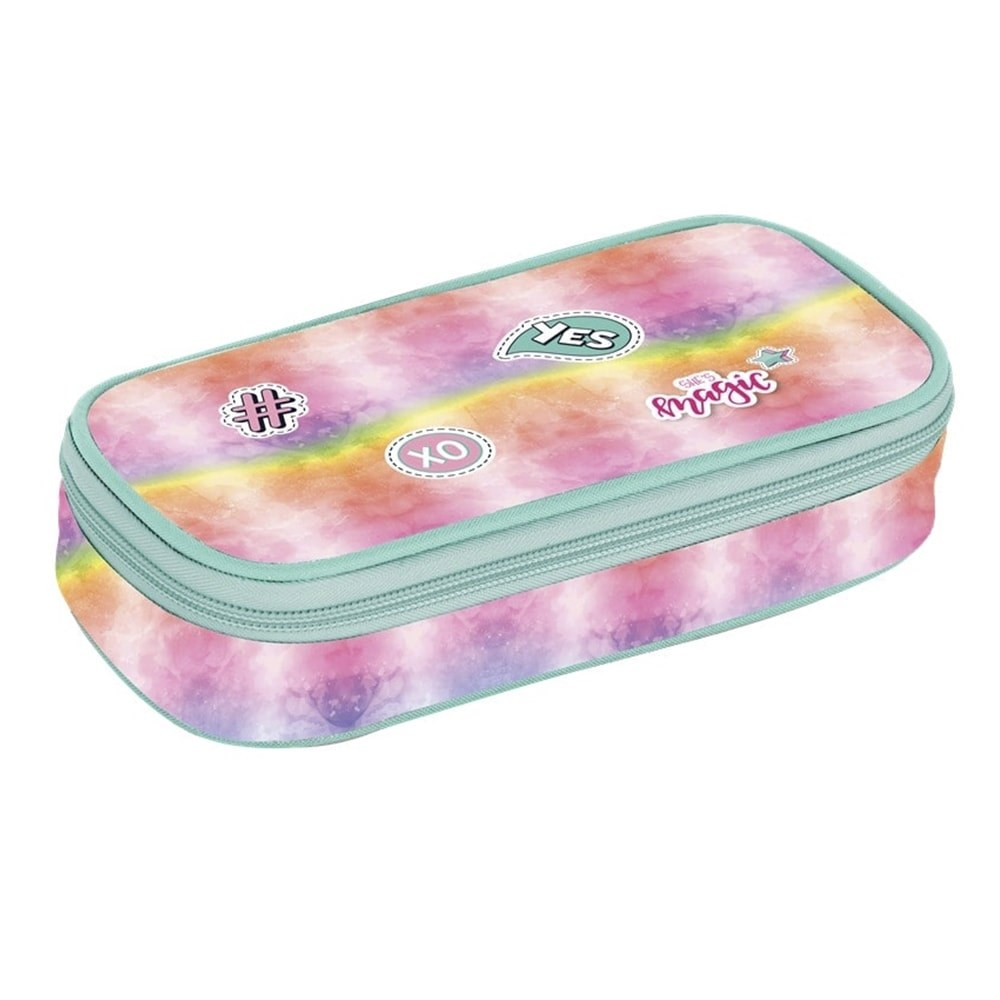 Az iskolai tolltartó erős cipzárral, zárható cipzáras zsebbel, vonalzótartó rekesszel és hat gumipánttal ellátott füllel rendelkezik az írószerek rögzítéséhez. A fül alatt szabad tárolóhely található írószerek vagy egyéb apróságok számára. Másodikos kortól és idősebb diákoknak ajánlott.