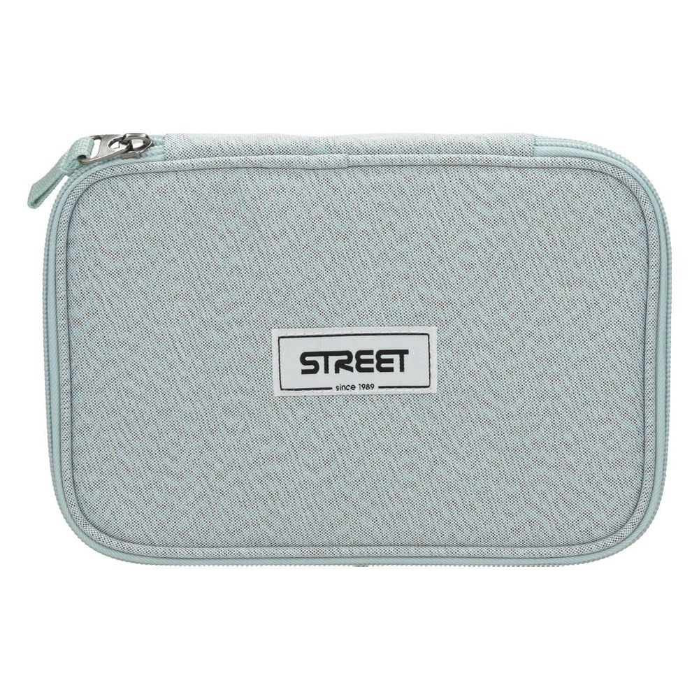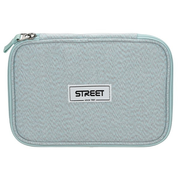 Többszintes, töltetlen, cipzáras tolltartó. Belül textillel bevont merev lapokkal, gumis kialakítással az írószerek tárolásához és egy cipzáras belső zsebbel.