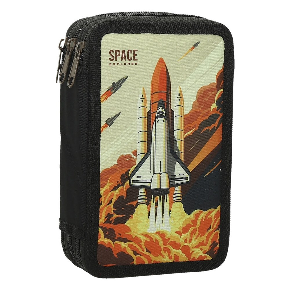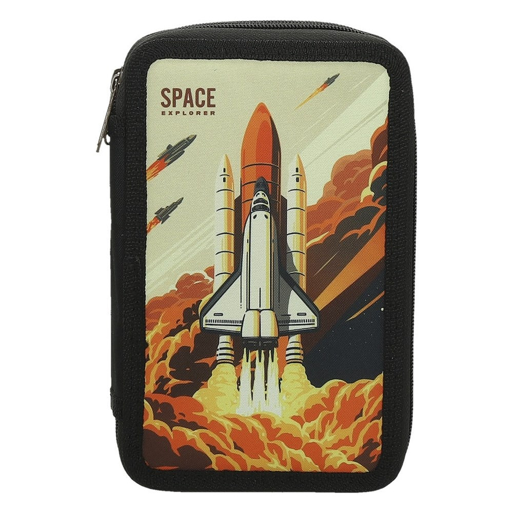 Többszintes töltetlen, cipzáras tolltartó.