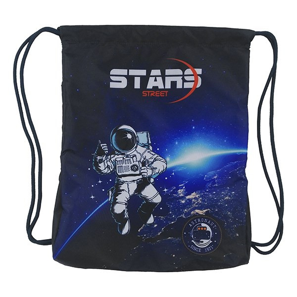 Asztronauta mintás tornazsák felül összehúzható zsinórral. Tartós és erős anyagból készült