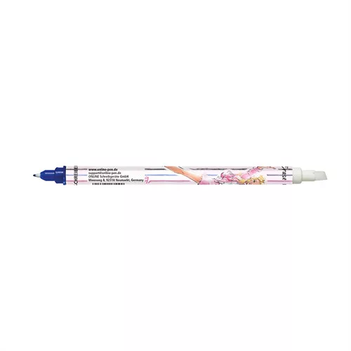 Kiváló minőségű kétvégű toll, melynek egyik vége kék tűfilc, a másik pedig tinta törléséhez való rostirón.