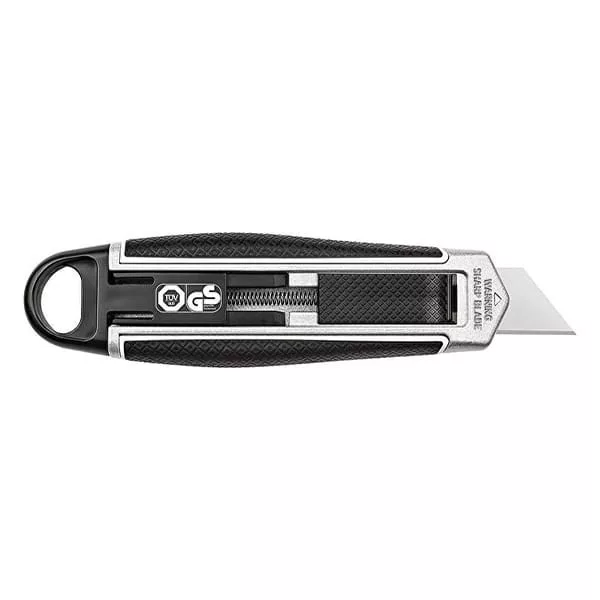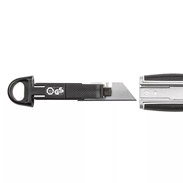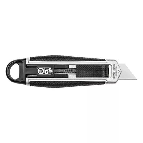 Univerzális vágókés WEDO 18 mm biztonsági 13,6 cm fém test gumi fogórész fém sínnel szürke rövid pengével