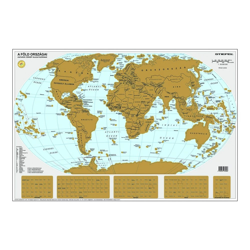 A Föld országainak lekaparható térképével nyomon követheti cége nemzetközi terjeszkedését, bármikor láthatja mekkora részét járta már be a világnak, de lekaparás után fali díszként is megállja a helyét.