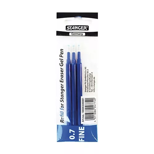 Zselés toll betét Stanger radírozható 0,7 mm kék 3 db