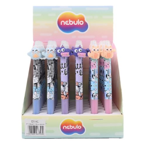 Zseléstoll NEBULO nyomógombos radírozható 0,5mm Vicces cicák