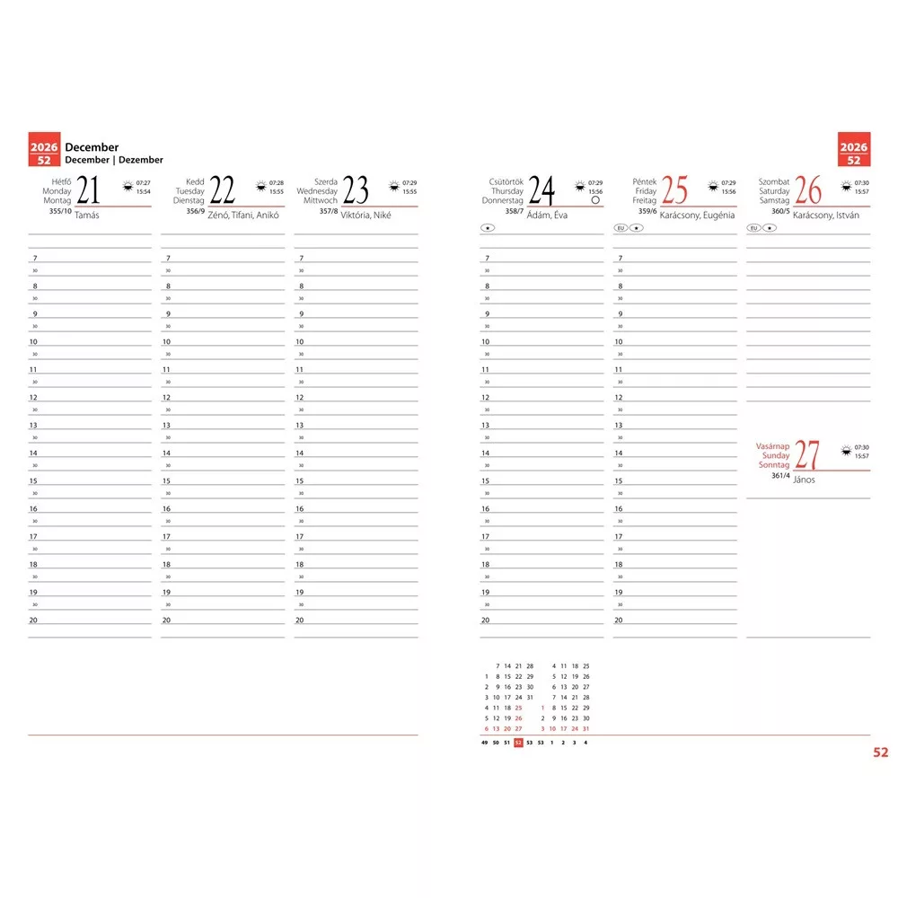 • 108 oldal heti beosztású naptár 2026. augusztus 17.- 2027. augusztus 22.-ig