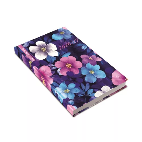 Diák zsebkönyv 125mmx205mm, fehér lapokkal 2026/2027 szirmok Realsystem
