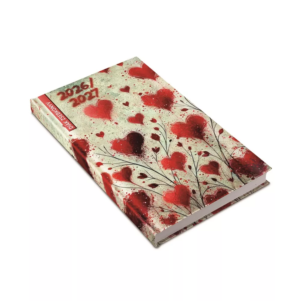 Diák zsebkönyv 125mmx205mm, fehér lapokkal 2026/2027 szívek Realsystem