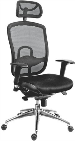 . Főnöki szék, fejtámlával szövetborítás, hálós háttámla, "Oklahoma", fekete