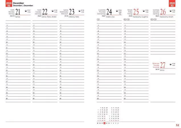 Agendák, heti beosztással