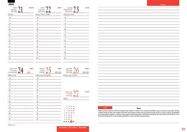 Agendák, heti beosztással