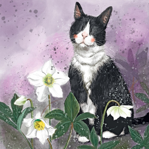 Képeslap Alex Clark borítékkal, 14x14 cm, cica virágokkal