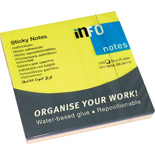 Öntapadós jegyzettömb Info Notes 75x75 mm 100 lapos élénk vegyes színek