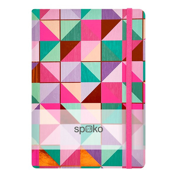 Jegyzetfüzet vonalas SPOKO A/5 96 lapos gumis keményfedeles színes mozaik