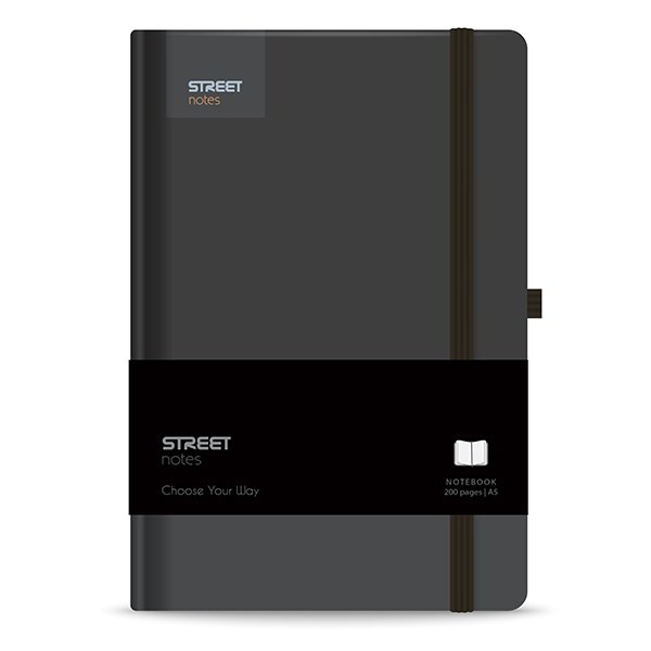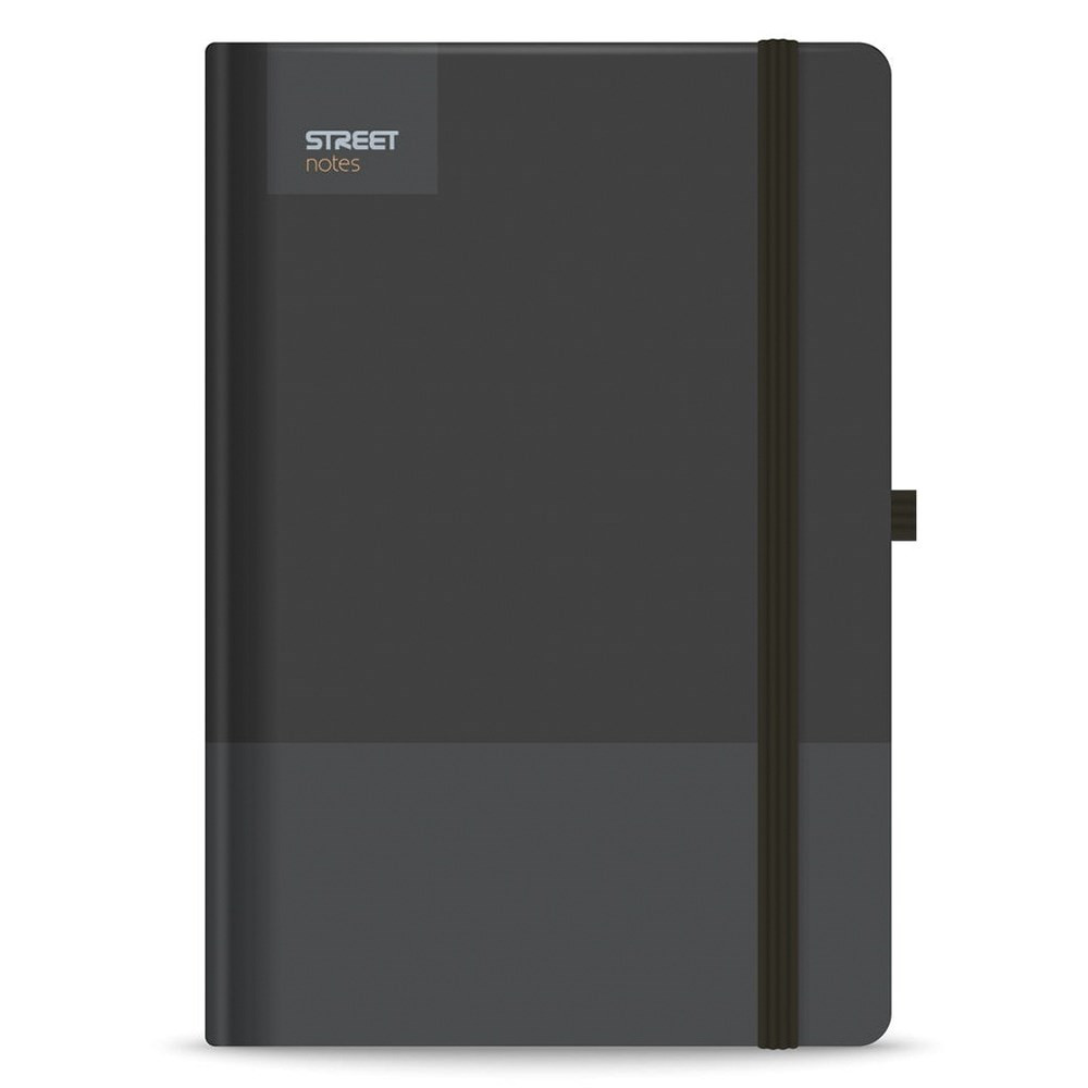 Notesz vonalas STREET Casual A/5 96 lapos gumis keményfedelű fekete