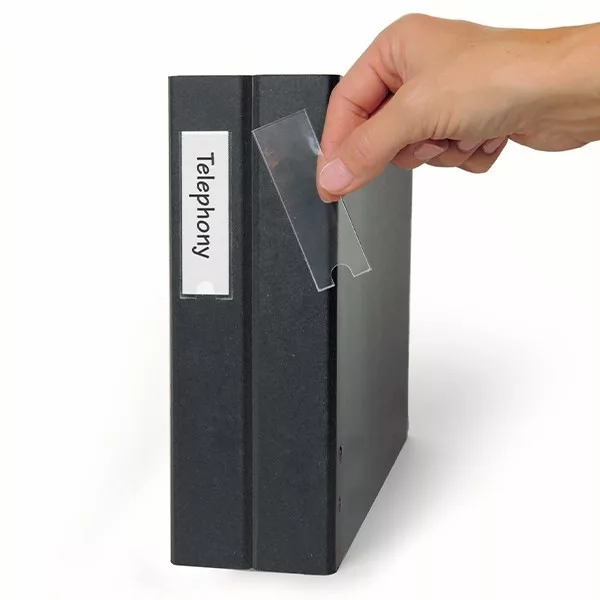 Praktikus, átlátszó, öntapadó, gerincjelölő címketartó tok iratrendezők-, gyűrűskönyvek-, iratgyűjtő mappák-, iratpapucsok gerinceinek jelölésére.