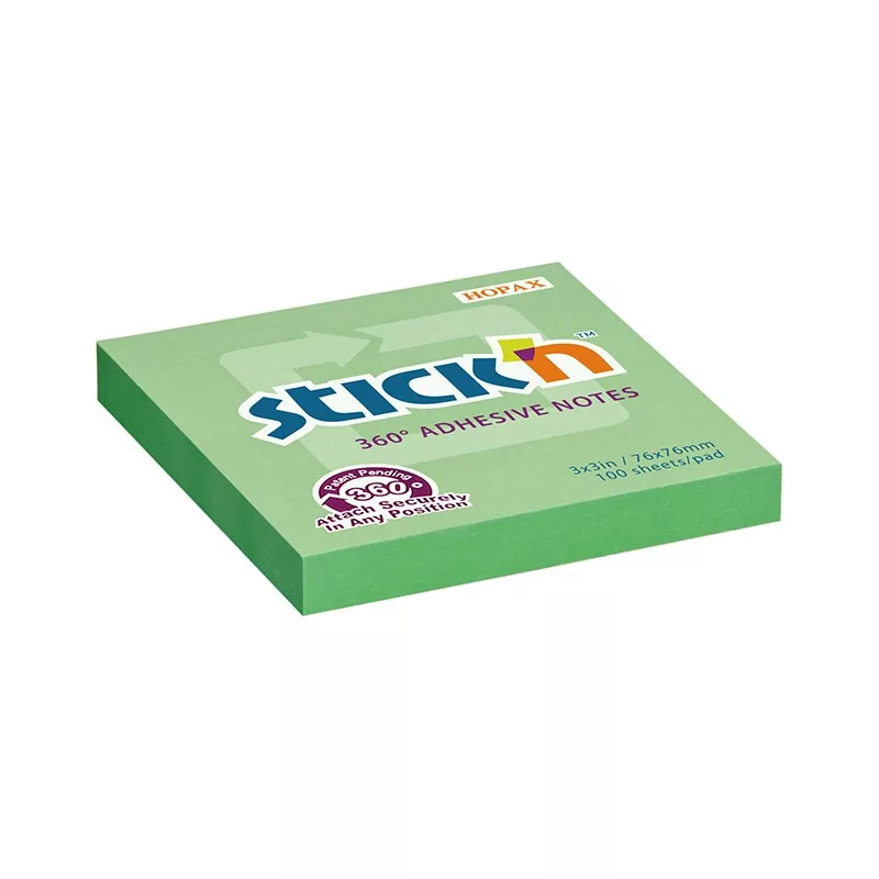 Öntapadós jegyzettömb STICK`N 76x76mm 360°-ban tapadó zöld 100 lap