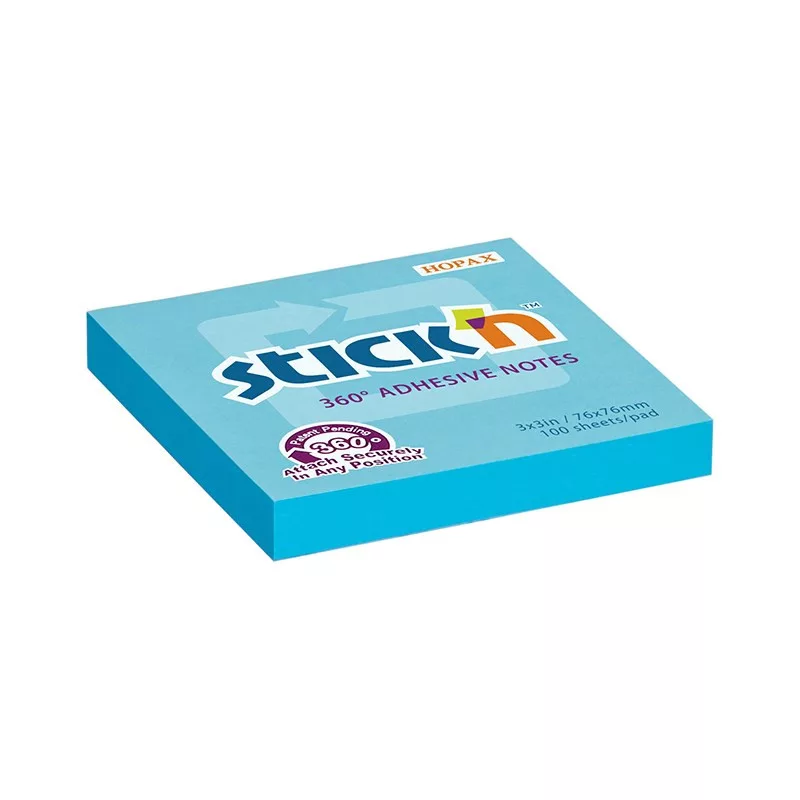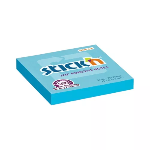 Öntapadós jegyzettömb STICK'N 76x76mm 360°-ban tapadó kék 100 lap