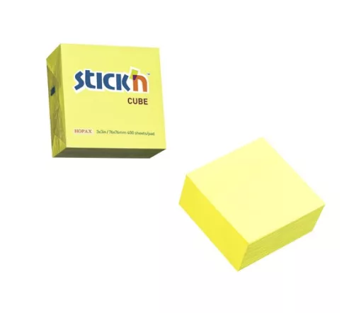 Öntapadós jegyzettömb STICK'N 76x76mm neon sárga 400 lap