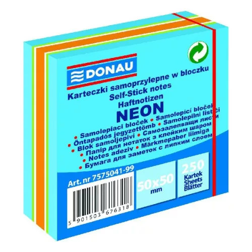 Öntapadós jegyzettömb DONAU 50x50 mm 250 lap vegyes neon színek kék