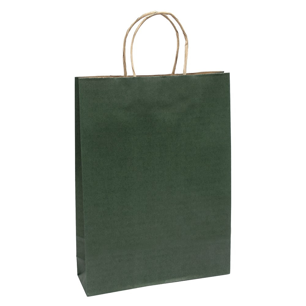 Dísztasak CREATIVE Classic Simple L 26x35x8 cm kraft egyszínű sötétzöld sodort füles