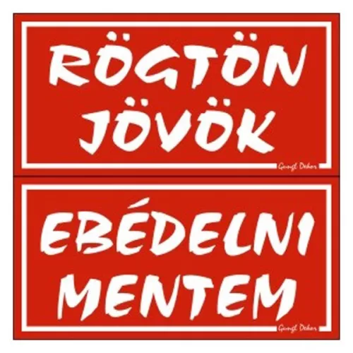 Piktogram Rögtön jövök-ebédelni mentem (kétold. tábla) piros
